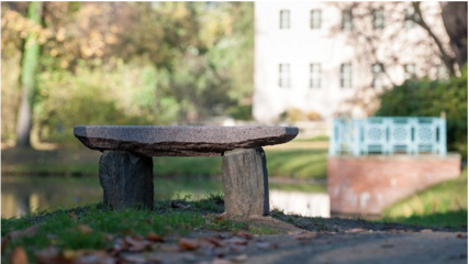 Errichtung einer Steinsitzbank am Schwarzen See mit Blick auf den Fischbalkon und das Schloss.